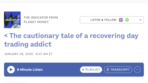 Chris was interviewed on the Planet Money podcast in the US talking about his addiction to stock market day trading.